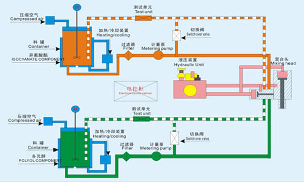 The polyurethane high pressure foaming machine is widely used in automotive, household electrical appliance, thermal insulated building materials, commercial refrigeration, furniture, sports equipment, etc. All main parts are imported. The technical performance and safety performance of the equipment have reached the international advanced technical level of similar products.