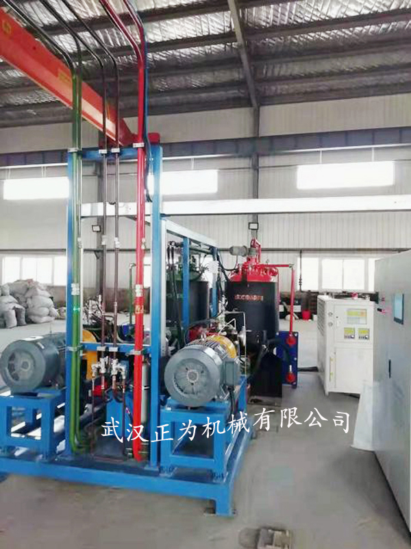 The high pressure polyurethane foaming machine with large flow is applied to the foaming of urban central heating pipes and large insulation sandwich panels. At present, there are HPF300 to HPF600 models. The equipment has the characteristics of large injection flow, high mixing pressure, maintenance free and high degree of automation.